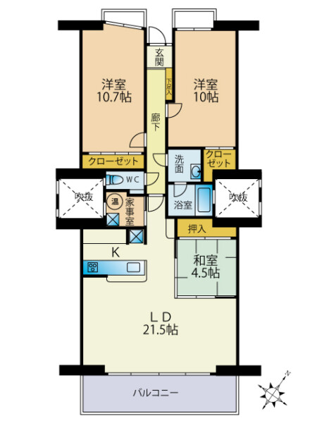 | デザイン | ★★★ | 専有面積108㎡超の大型3LDK・リビングはゆとりの21.5帖 |